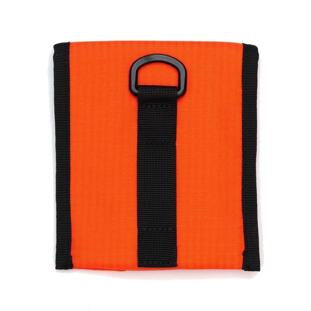 底部分にマチがあり、立体的な形状のワックスも収納可能。 背面にはベルトループとDリングを備えます。